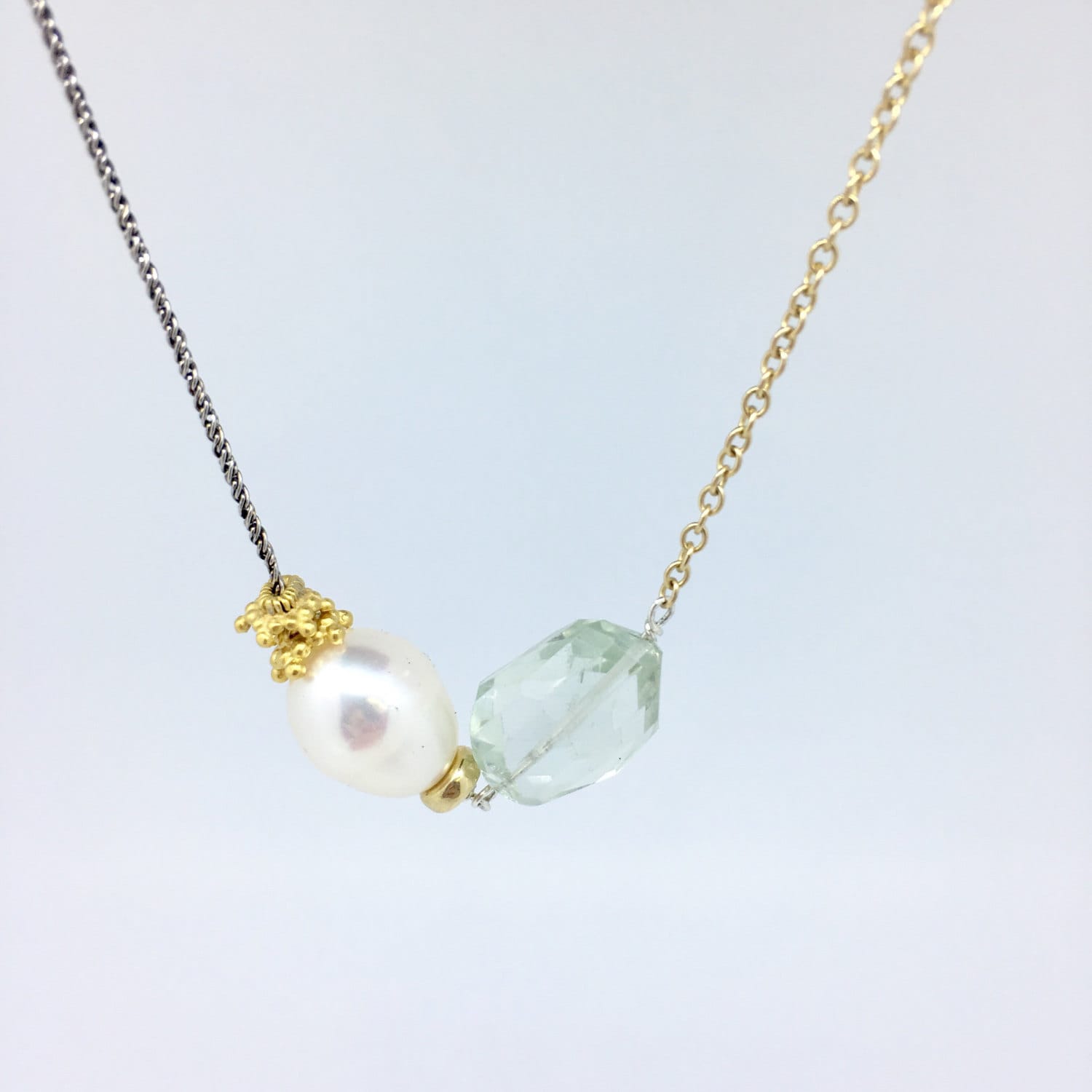 Asymmetrical Pearl and Green Amethyst Necklace