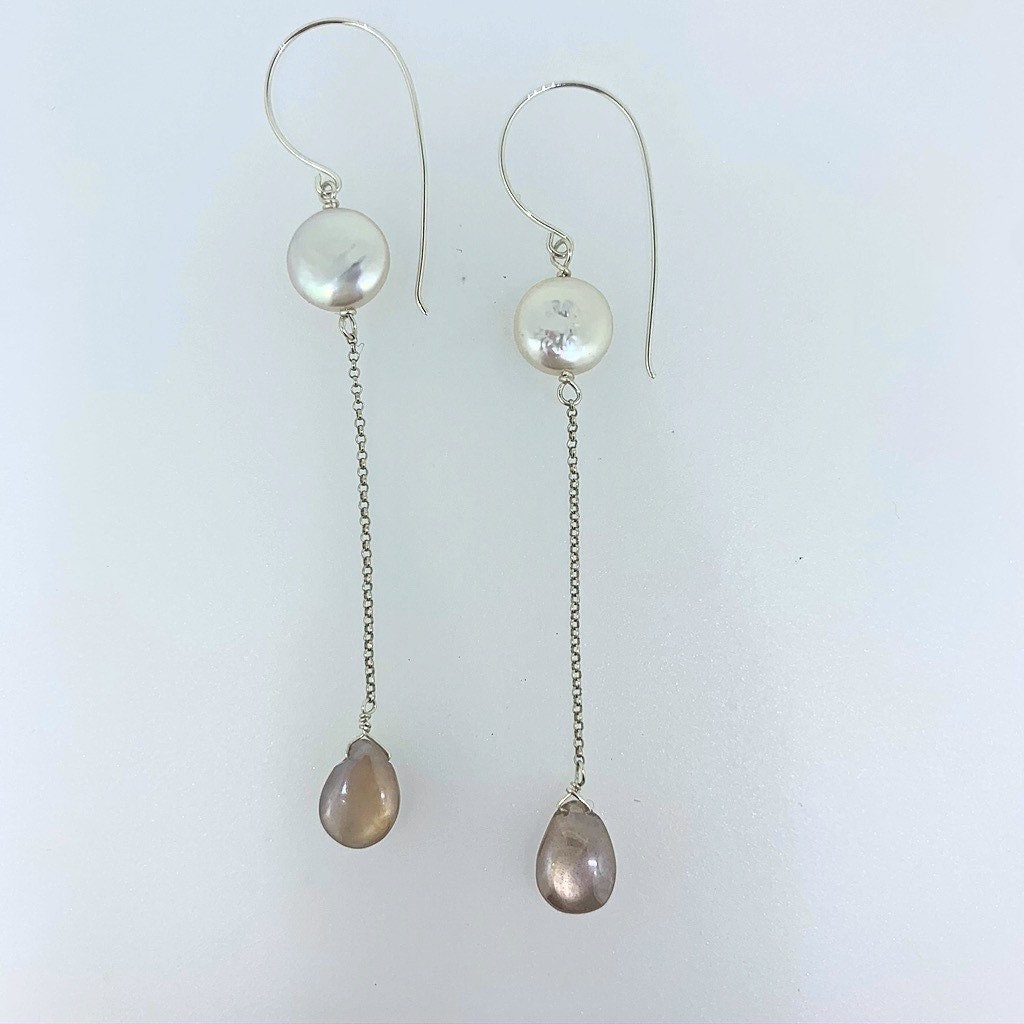 Coin Pearl and Pink Moonstone Drops