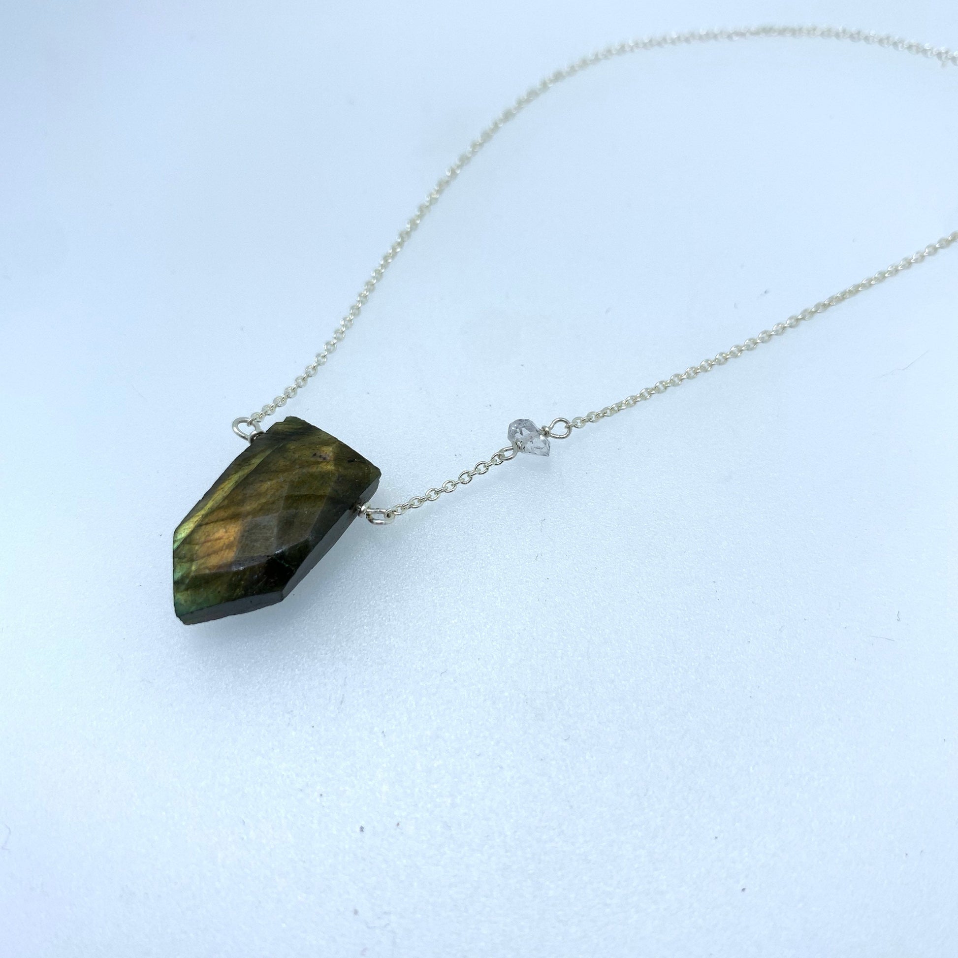 All of our designs are HANDCRAFTED and VARIANCES MAY OCCUR. Each piece should be TREATED AS ONE OF A KIND. All the gemstones are natural and the chains and wire we use are all sterling silver or 14k gold filled. Tarnishing is a natural occurrence with sterling silver, so it should be treated like any other silver jewelry. All chains are soldered together, however some of the chains we use are elegantly delicate. Please keep this in mind while wearing.