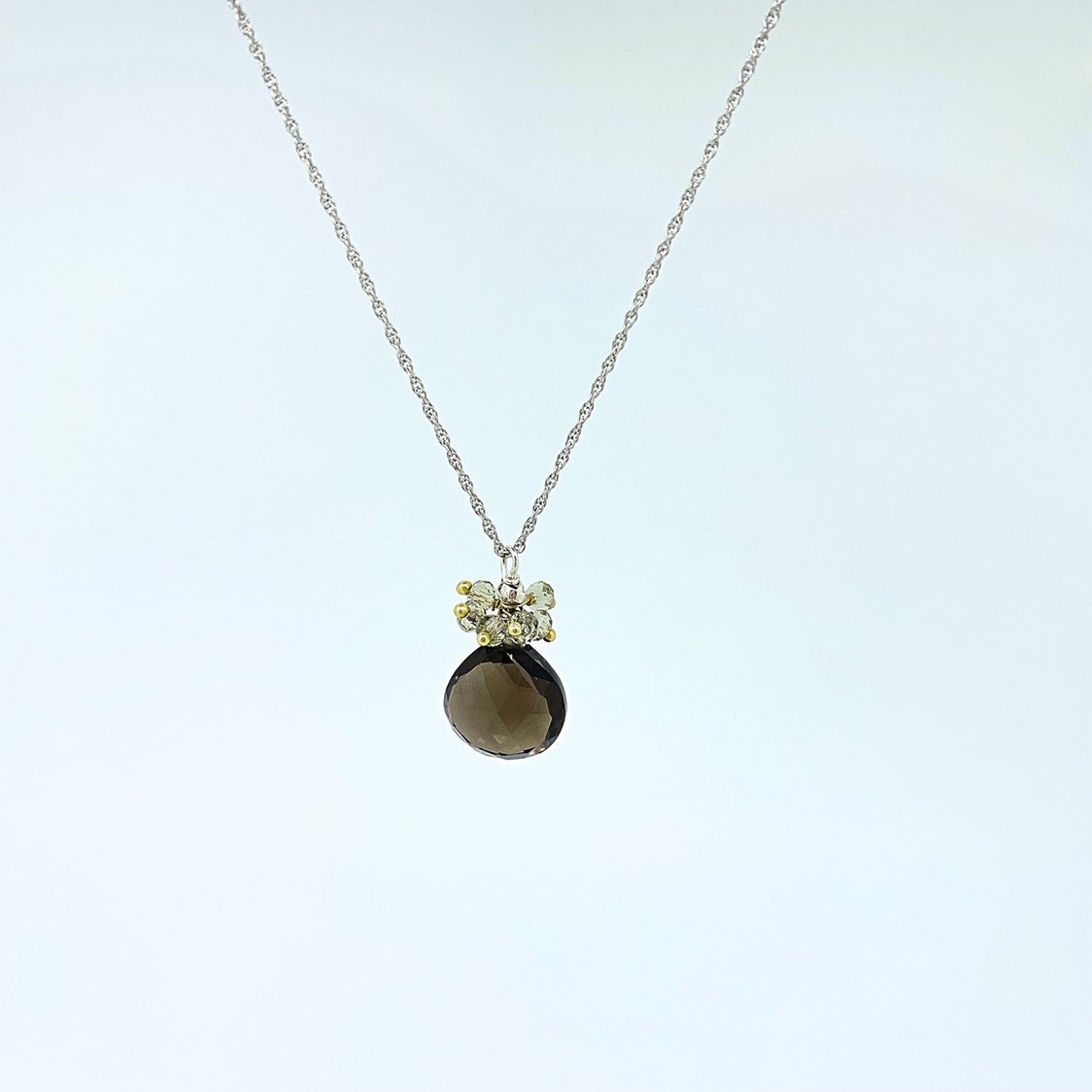 All of our designs are HANDCRAFTED and VARIANCES MAY OCCUR. Each piece should be TREATED AS ONE OF A KIND. All the gemstones are natural and the chains and wire we use are all sterling silver or 14k gold filled. Tarnishing is a natural occurrence with sterling silver, so it should be treated like any other silver jewelry. All chains are soldered together, however some of the chains we use are elegantly delicate. Please keep this in mind while wearing.
