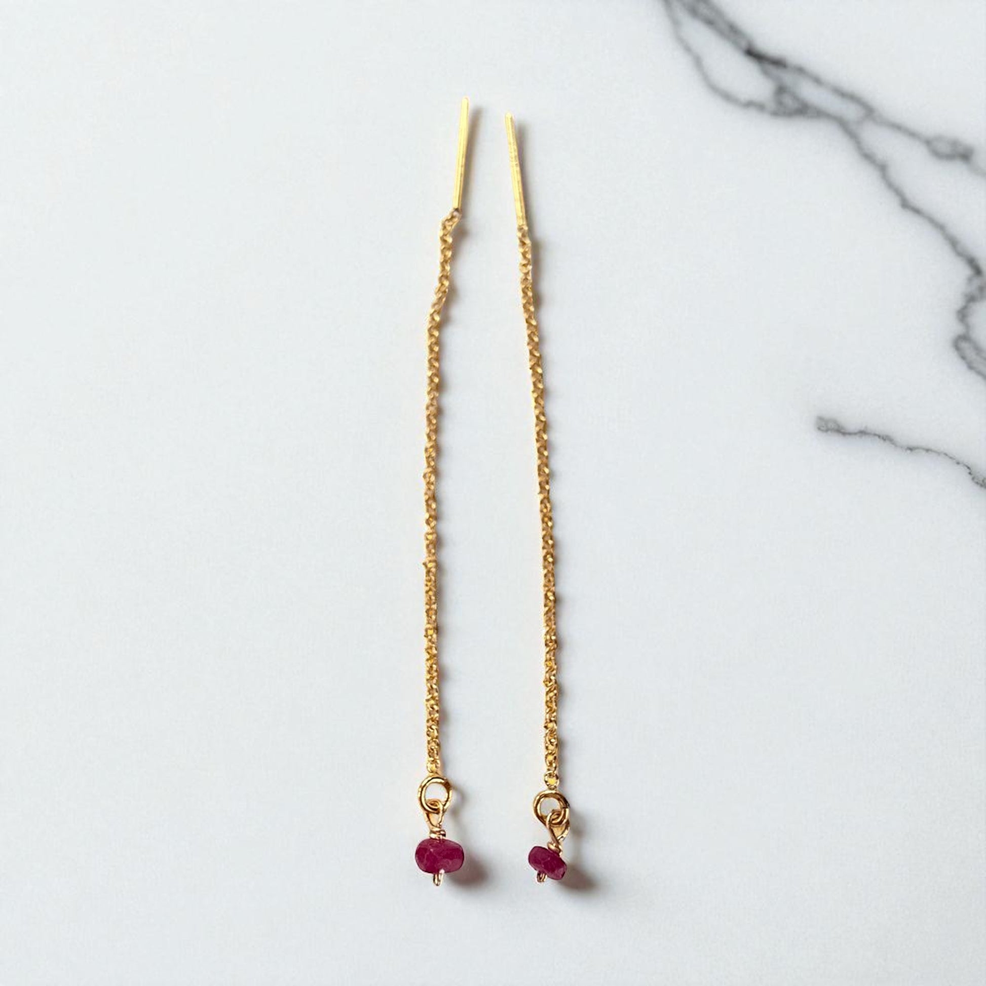 Minimal 2 inch length 14k gold fillled threader with tiny micro cut rubies